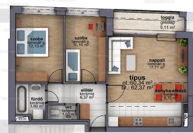 63 m2 újépítésű lakás Újpest